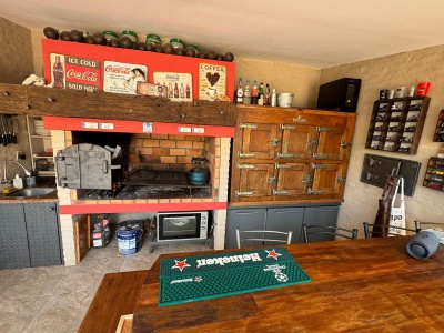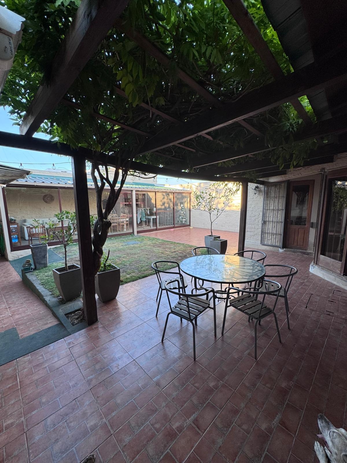 El patio es de buen tamaño, contra la casa está la pérgola de madera muy disfrutanle por su vegetación, buen espacio de pasto central , contra el norte del terreno se encuentra una barbacoa cerrada de adecuado tamaño con parrillero.