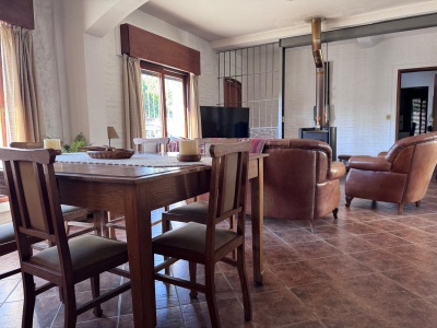 Luego del zaguán y cancel, se accede a un amplio living comedor, con cocina semi integrada en el mismo, está muy completa y moderna, todo esto con aberturas el frente y al patio con puertas ventanas, tiene sistema de calefacción central por rafiadores en todos los ambientes de la casa por medio de agua, siendo su fuente una estufa Amesti. Hay un baño social completo contiguo al mismo.